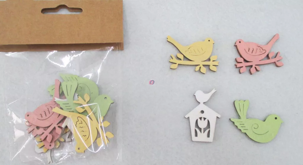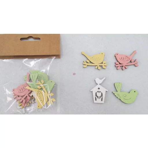 12 db-os tavaszi dekor madár szett fa 3,5 cm
