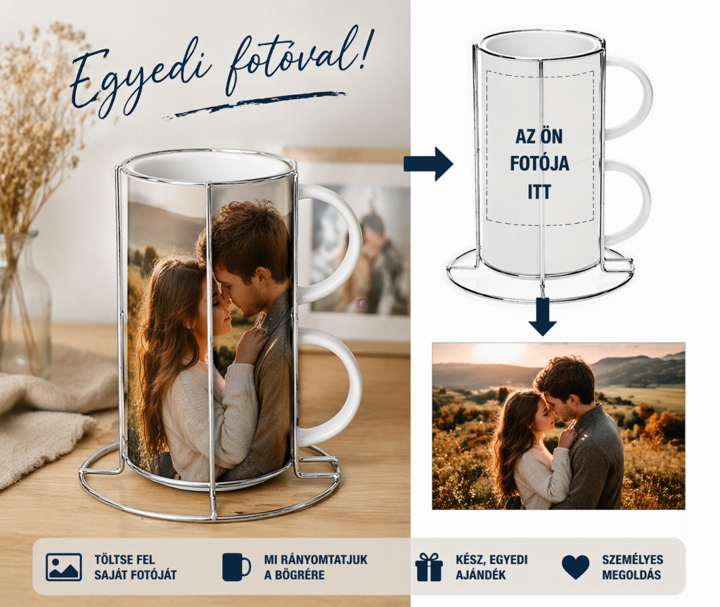 Ez a személyre szabott logós, fényképes kerámia bögre szett szuper kiegészítője lesz a konyhának, de kiváló reklámajándék is lehet. Prémium grafika és anyag.