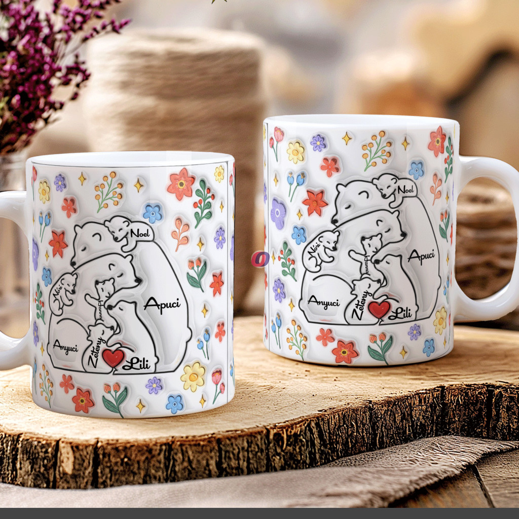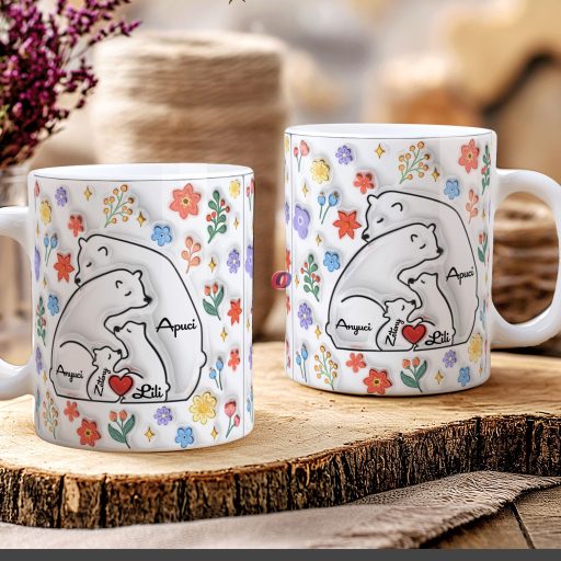 - Egyedi feliratos Ajándék bögre "Medve család, Max 5 gyerek"