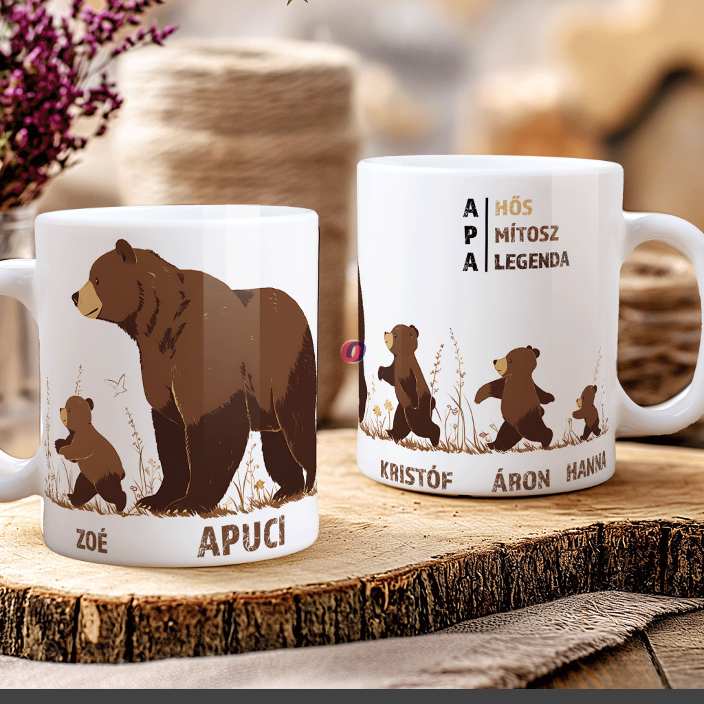 - Egyedi feliratos Apák napi bögre "Apamaci bocsokkal, Max 5 gyerek"