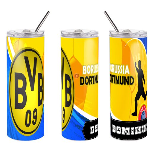 Ez a személyre szabható BORUSSIA DORTMUND 600ml duplafalú tumbler szuper kiegészítője lesz a focimeccs nézésnek, vagy bármilyen sporteseménynek, túrázásnak Prémium grafika és anyag. A kulacs teljes felületére felkerül a nyomat!