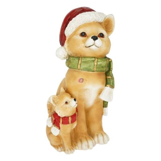 | Megnevezés | Cica kiscicával mikulás sapkában, ülő magnézia 24,5x24,5x45,5 cm barna, piros |