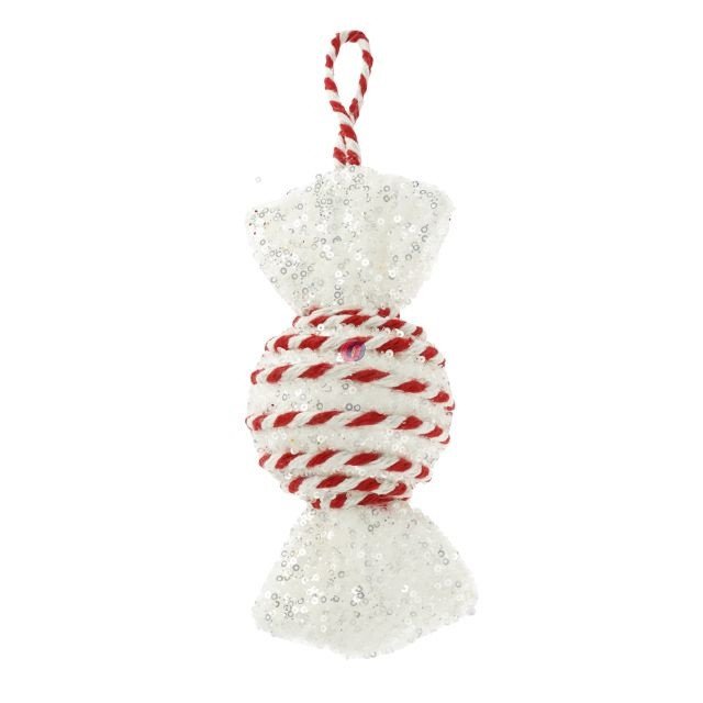 | Megnevezés | Cukorka akasztós, flitteres polyfoam 19x8x8 cm fehér, piros |