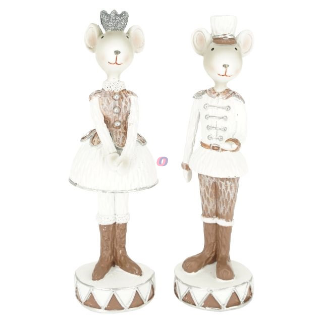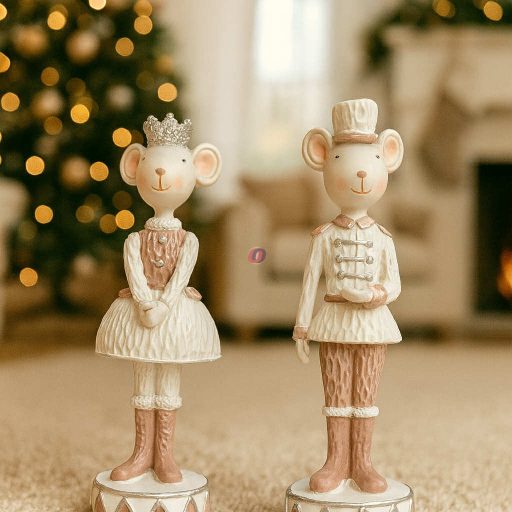 Az „Egér fiú, lány ruhában álló poly 4,5x4,5x14,5 cm fehér, bézs 2 féle” dekoráció klasszikus karácsonyi hangulatot teremt. Részletgazdag megjelenése azonnal a figyelem középpontjába kerül.