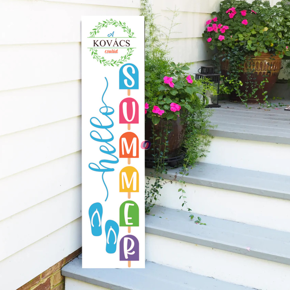 Egyedi Tábla Hello summer felirattal jégkrémes, 60 cm, akasztható dekorációs kiegészítő, de szuper ajándék is lehet