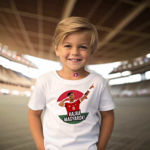 Egyedi neves Gyerek szurkolói póló - Hajrá Magyarok, fehér