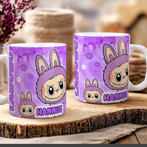 Egyedi neves "Labubu lila" bögre személyre szabható fehér