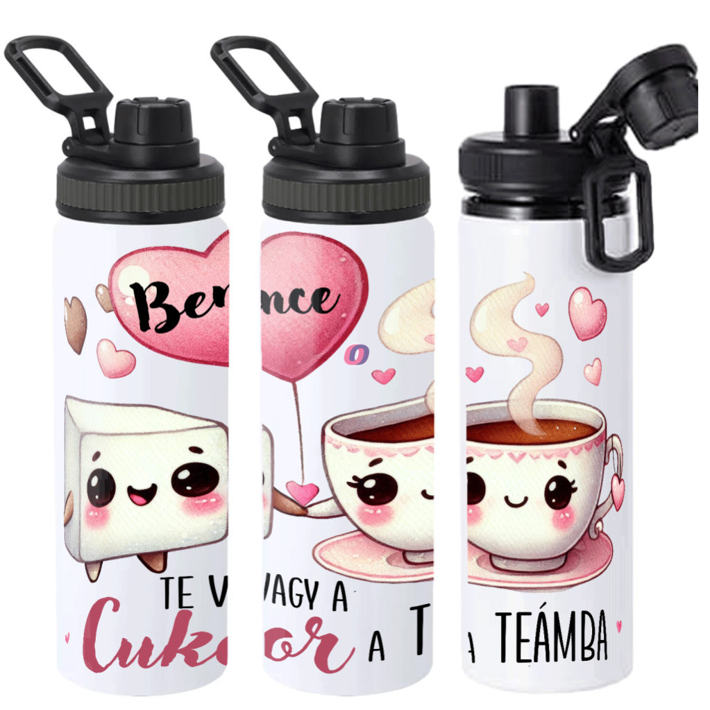 Egyedi neves Szerelmes Kulacs 850 ml "Te vagy a cukor a teámba" HD