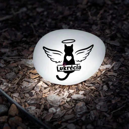 Tegye különlegessé szeretett cicái emlékhelyét ezzel a nagyszerű személyre szabható napelemes lámpával. A leszúró tüske segítségével gyorsan és egyszerűen el tudja helyezni. Választhat, hogy szárral vagy szár nélkül telepíti a lámpást. Amint besötétedik, a lámpa automatikusan bekapcsol, napkeltekor pedig kikapcsol. Napközben a szolárcellák a napenergiát árammá alakítják és az akkumulátorban eltárolják.