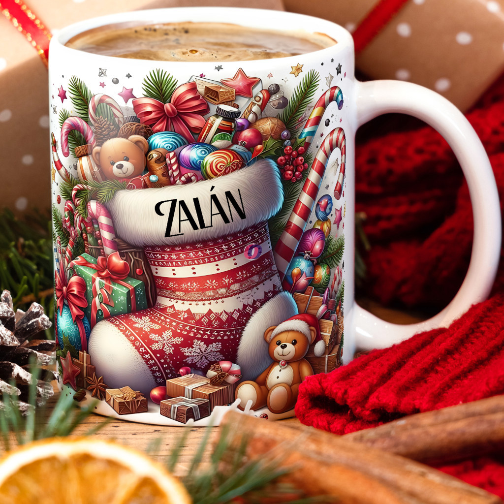 - Egyedi neves karácsonyi bögre "A Mikulás műhelye" 330 ml kerámia Full HD