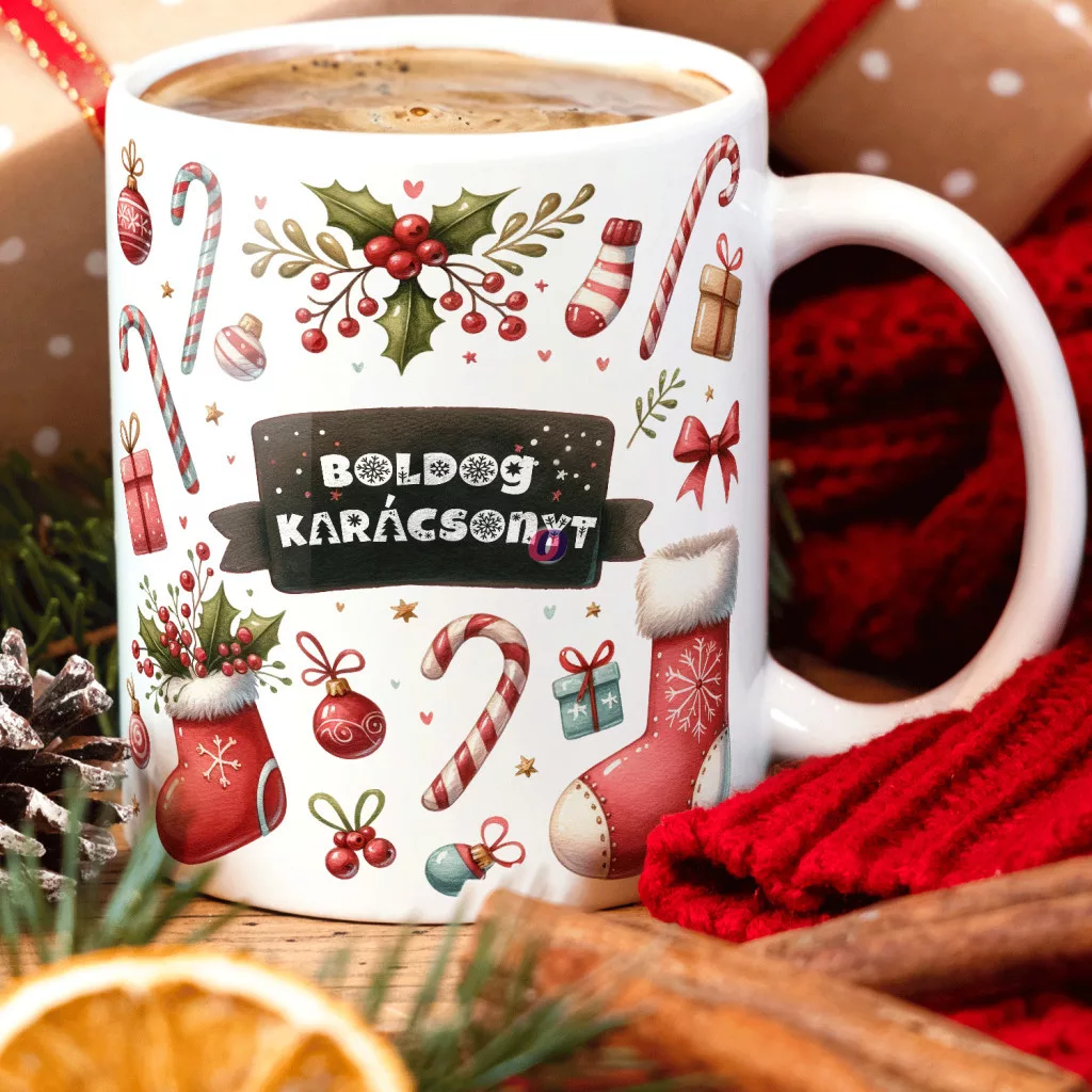 - Egyedi neves karácsonyi bögre "Candy Christmas" 330 ml kerámia Full HD