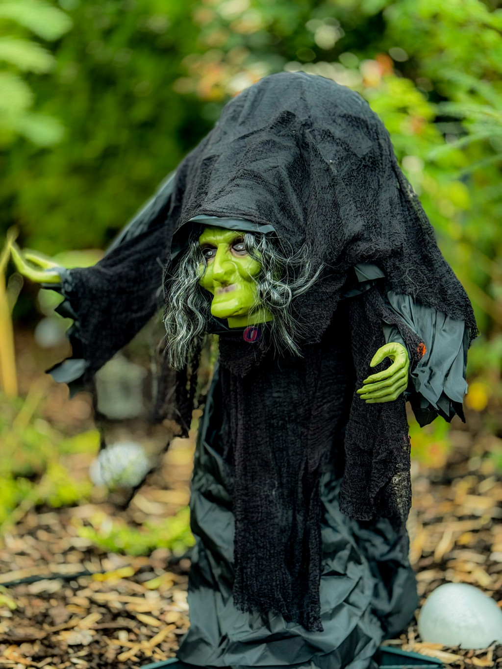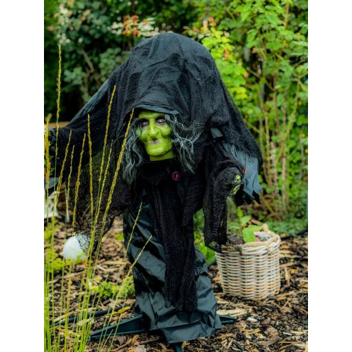 Prémium kategóriás Halloween animált boszorkány-szellem díszeink halloweenre készültek. Élethű animált Halloweeni Boszorkány méretű, és nagyszerű kiegészítője lesz Halloweennek. Gonoszul hátborzongató dekoráció, amely garantáltan meglep és izgalom. Minden alkalommal, amikor mozgást és hangot észlel, a szellem életre kel