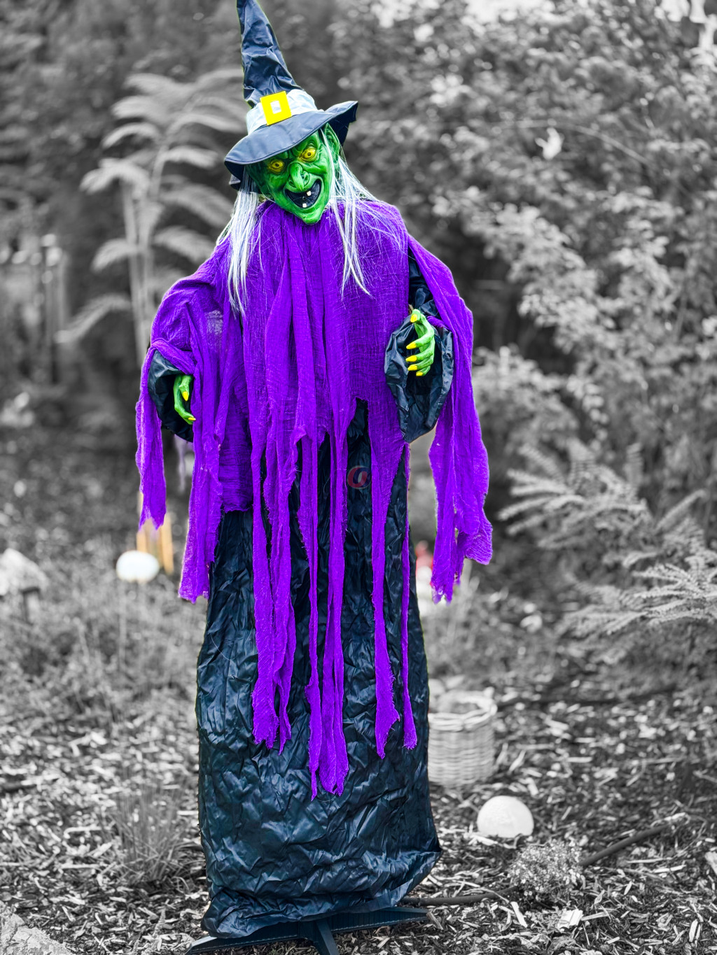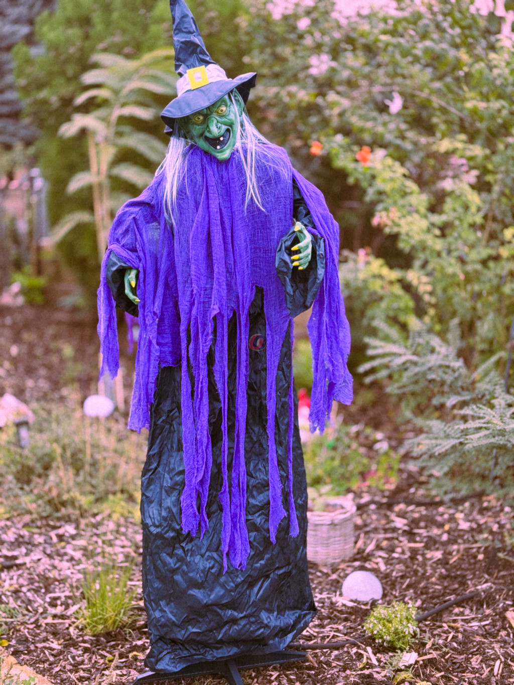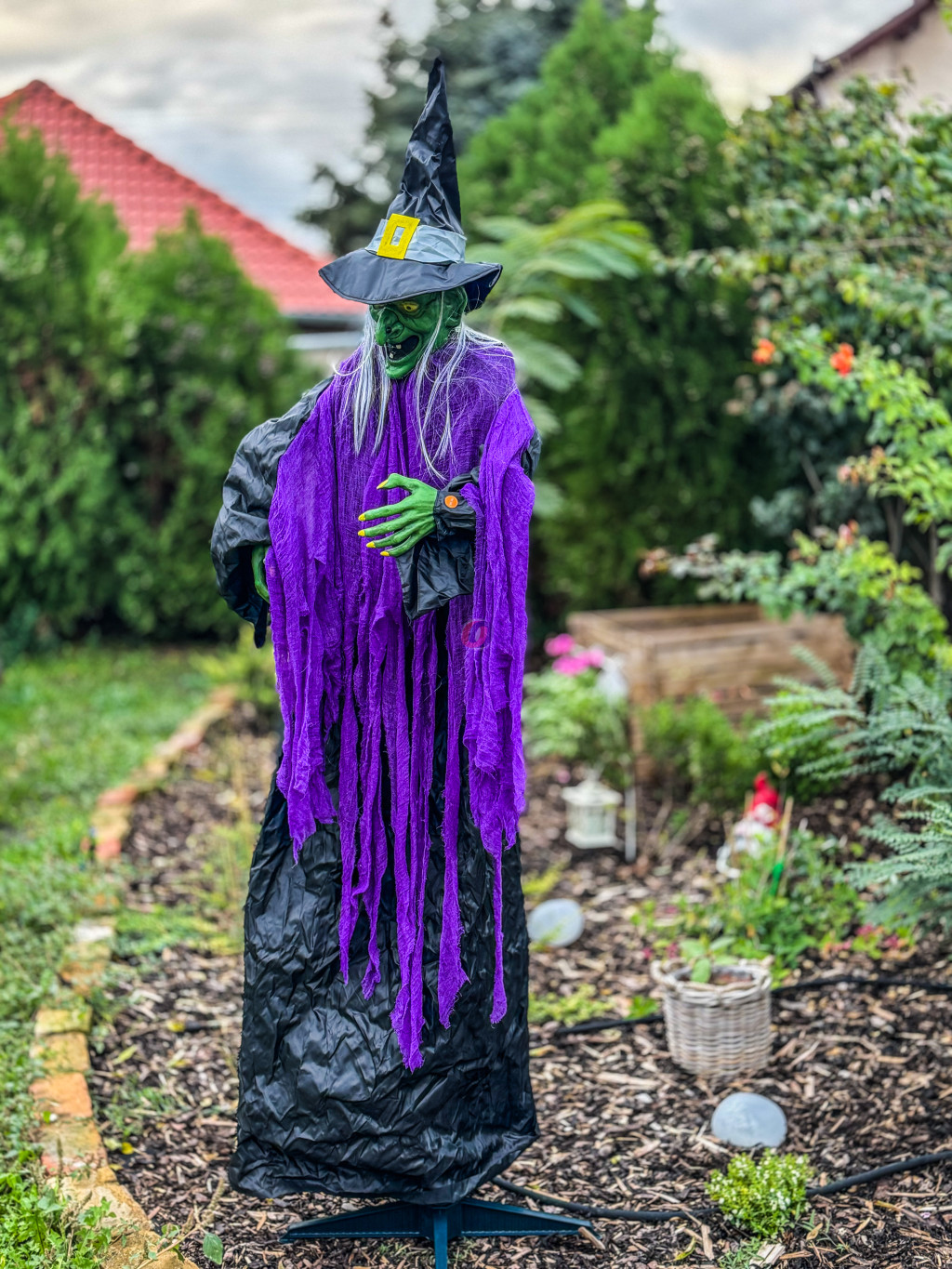 Prémium kategóriás Halloween animált boszorkány-szellem díszeink halloweenre készültek. Ez az elem körülbelül 182 cm x 25 cm méretű, és nagyszerű kiegészítője lesz Halloweennek. Gonoszul hátborzongató dekoráció, amely garantáltan meglep és izgalom. Minden alkalommal, amikor mozgást és hangot észlel, a szellem életre kel