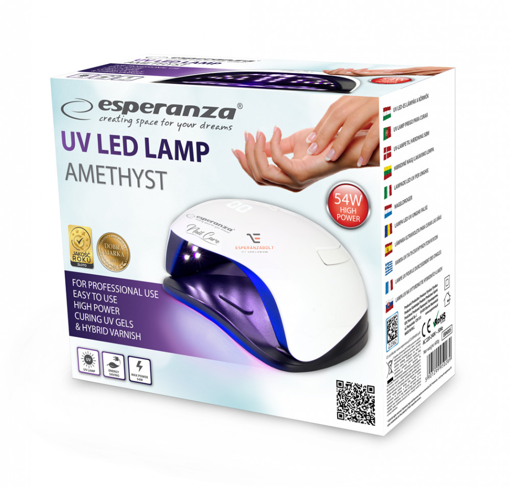 Az Esperanza Amethíst Műkörömépítő körömlakk szárító lámpájával elfelejtheted gyakori látogatásaid a szépségszalonokban és drága manikűrt is!