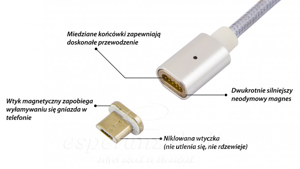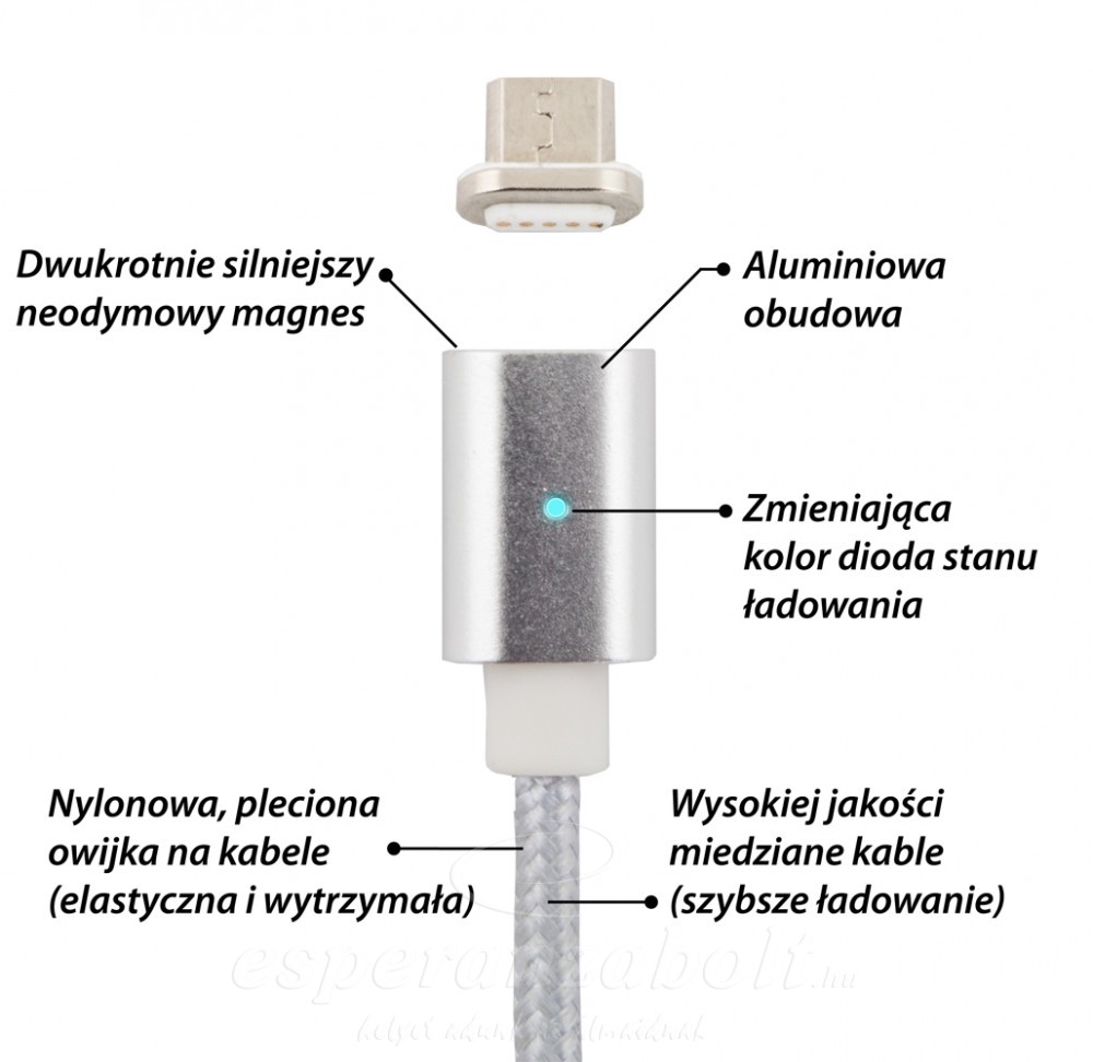 A mágneses megoldás jelentősen leegyszerűsíti és gyorsítja a kábel használatát. Nem kell többé figyelmet fordítania arra, hogy a mikro-USB csatlakozó megfelelően illeszkedik-e a nyílásba. Mindössze annyit kell tennie, hogy helyezze be a mágneses mikro-USB csatlakozót a készülék aljzatába, majd a kábellel közelítse meg, és a kapcsolat azonnal létrejön.