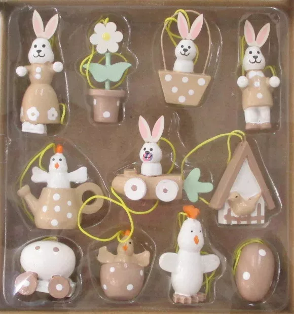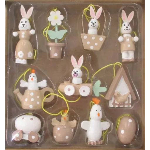 Fa Akasztós Húsvéti Dekor 11 db-os szett natúr