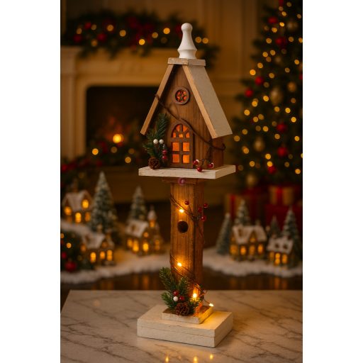 Ez a bájos világító házikó természetes megjelenésével és meleg fényével hangulatos kiegészítője lesz az ünnepi dekorációnak. Tedd az asztalra, ablakpárkányra vagy polcra, ahol minden este varázslatos fénybe borítja a helyiséget.