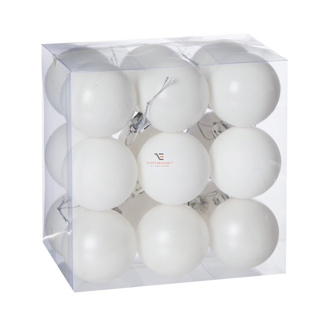 Gömb dobozban műanyag 5cm fehér 3 féle  18db-os kiszerelés