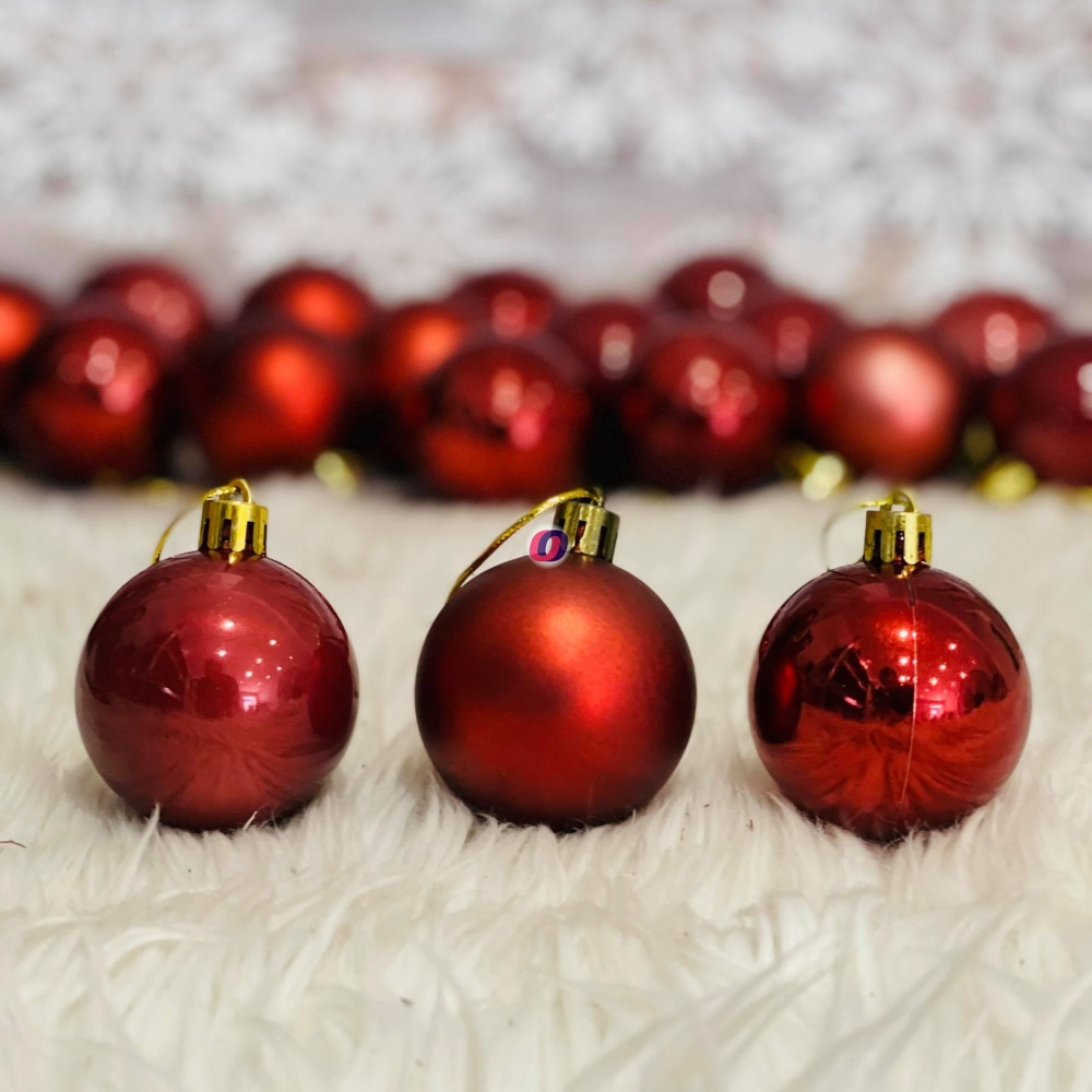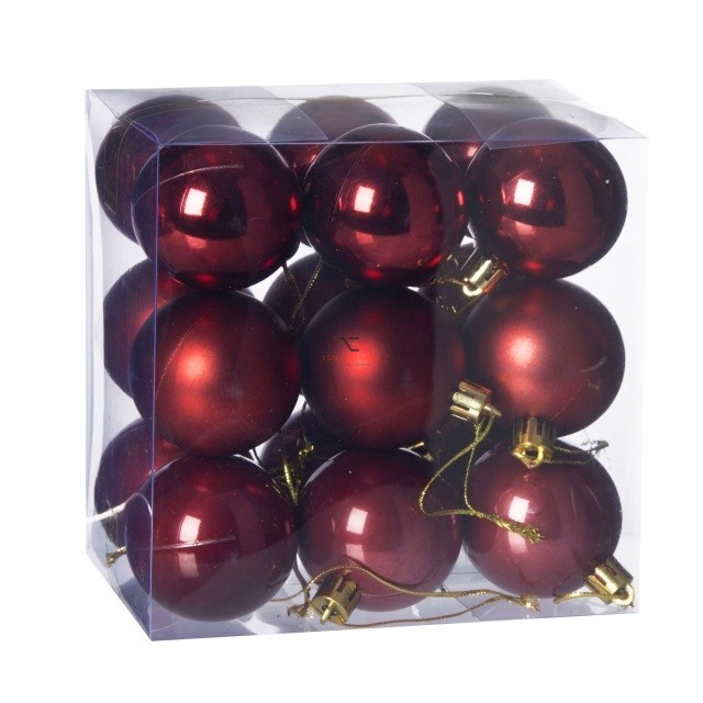 Gömb, dobozban műanyag 5cm piros 3 féle S/18 18db-os kiszerelé