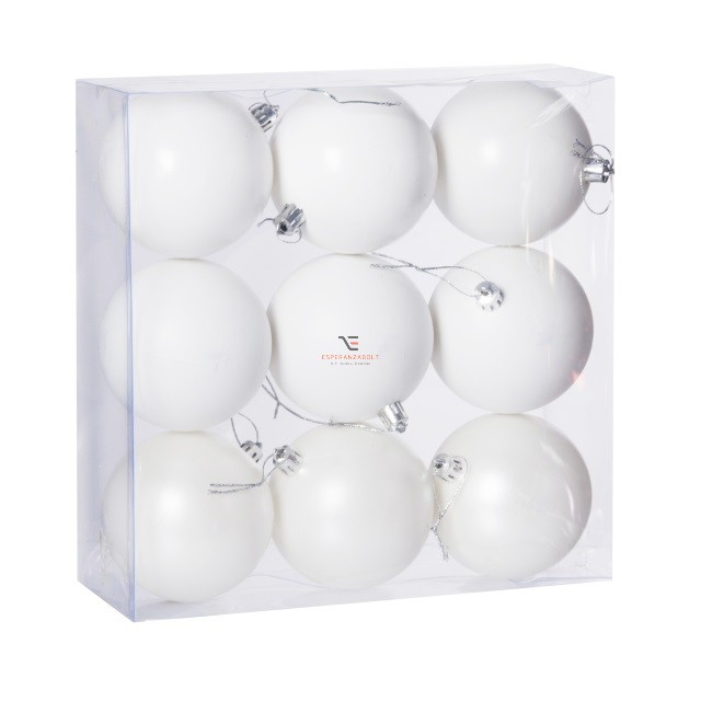 Gömb dobozban műanyag 8cm fehér 3 féle 9db-os kiszerelés
