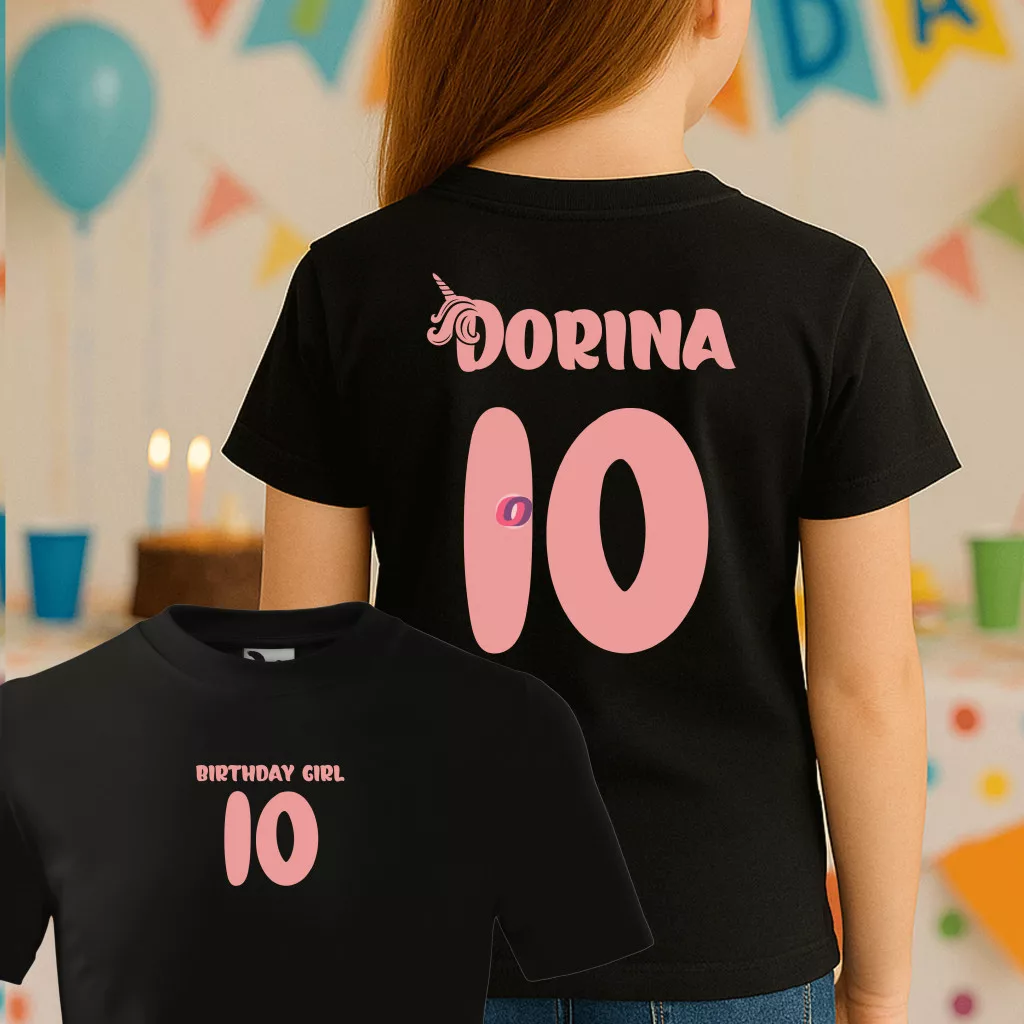 Gyerek Szülinapi póló egyedi névvel és számmal Fekete, pamut, lányos, többféle méret "Birthday Girl"