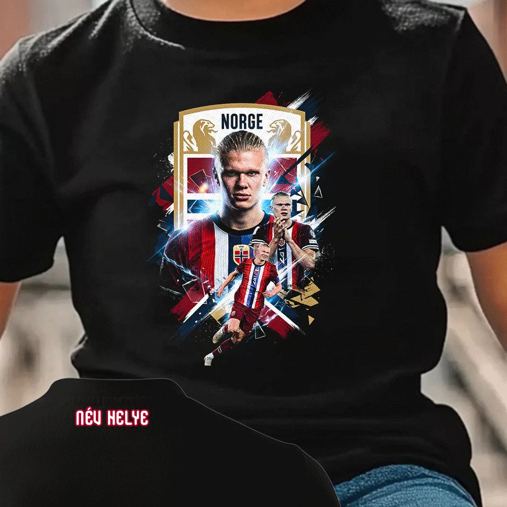 Haaland mintás póló egyedi névvel, gyerek és felnőtt méretekben World Cup