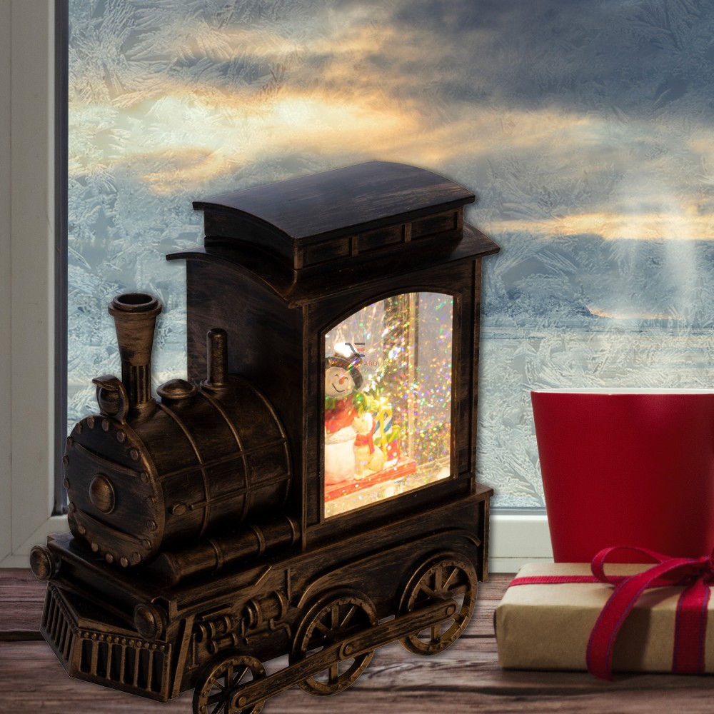 funkciók lámpás vízkeveréssel, csillámokkal, mozdony