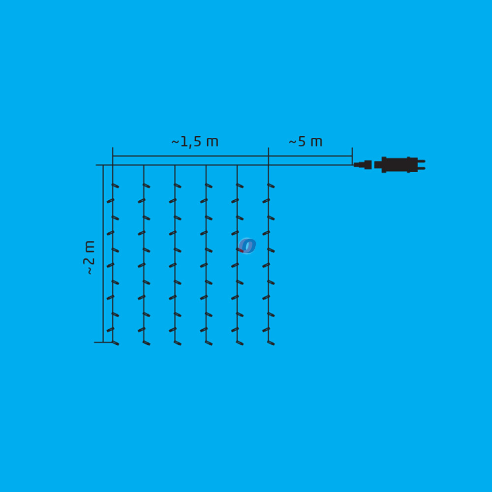 1,5 m x 2 m füzérhossz 5 m tápvezeték |
