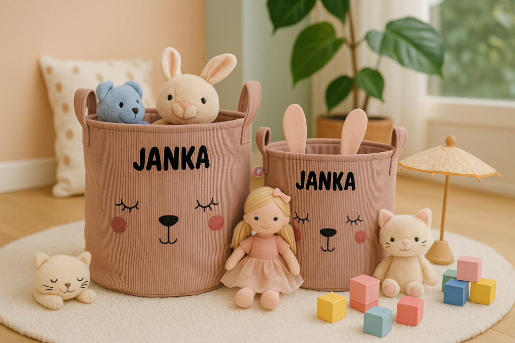 Játéktároló szett, egyedi névvel 2db-os, mályva Kiváló kiegészítő gyerekszobában de szuper ajándék is lehet