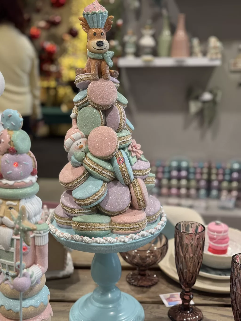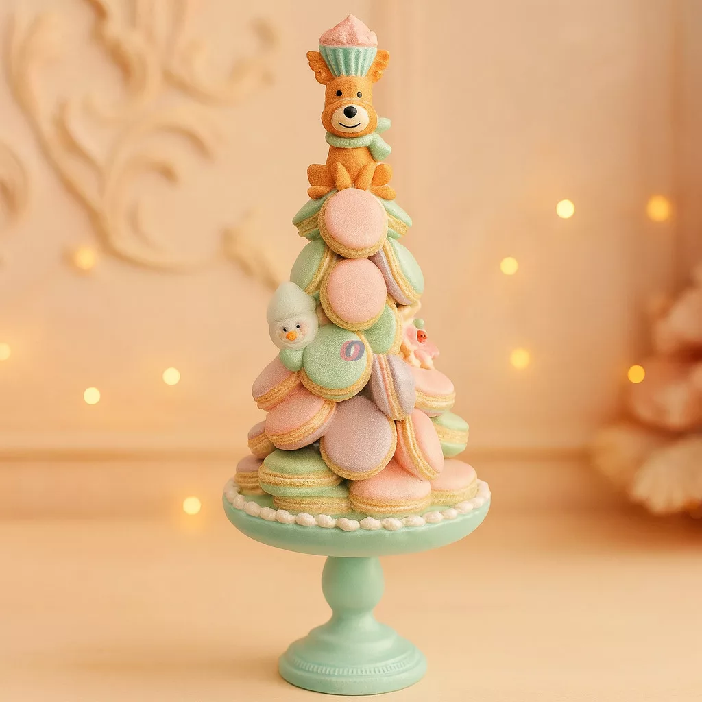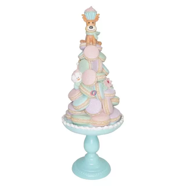 A „Karácsonyi Macaron tál dekor szarvassal és hóemberrel” glitteres kivitelben egyedülálló és látványos kiegészítője lehet az ünnepi dekorációnak. A pasztell színek kifinomult eleganciát árasztanak, míg a szarvas és hóember figurák játékos, mesés hangulatot teremtenek. 60 cm-es magasságával igazán impozáns darab, amely bármely enteriőr központi dísze lehet.