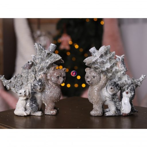 Karácsonyi állatfigurák fenyővel 17 cm poly 2 féle választható kivitel