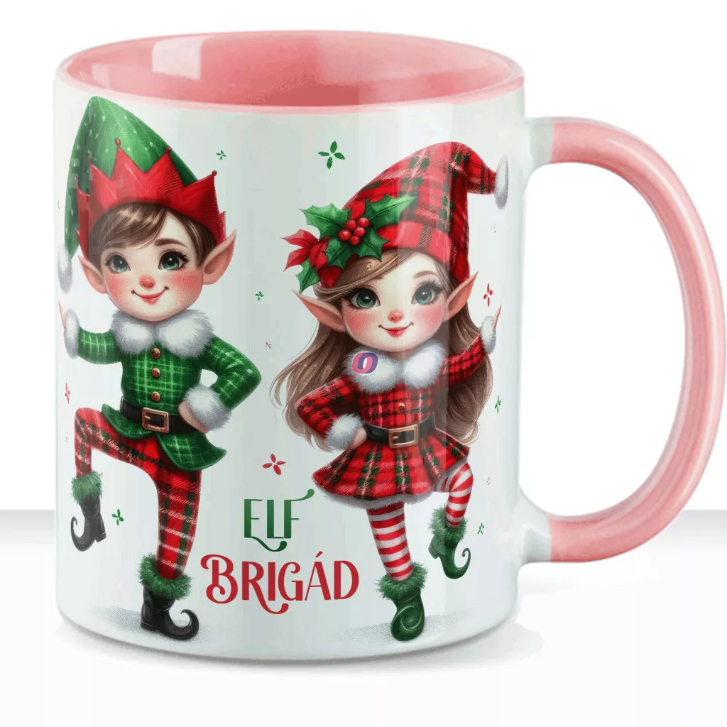 • Karácsonyi bögre "Elf Brigád" 330 ml kerámia Rózsaszín Full HD
