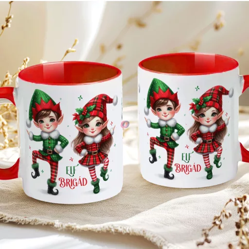 Karácsonyi bögre "Elf Brigád" 330 ml kerámia piros Full HD