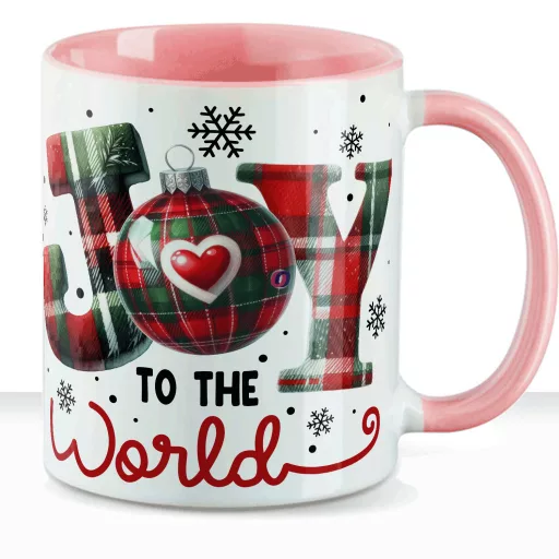 • Karácsonyi bögre "Joy to the world" 330 ml kerámia Rózsaszín Full HD