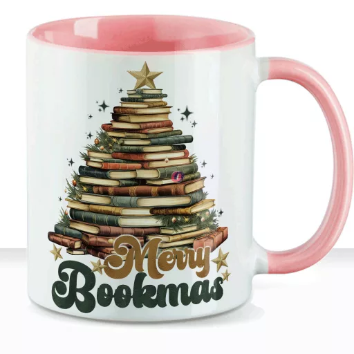 • Karácsonyi bögre "Merry Bookmas" 330 ml kerámia Rózsaszín Full HD