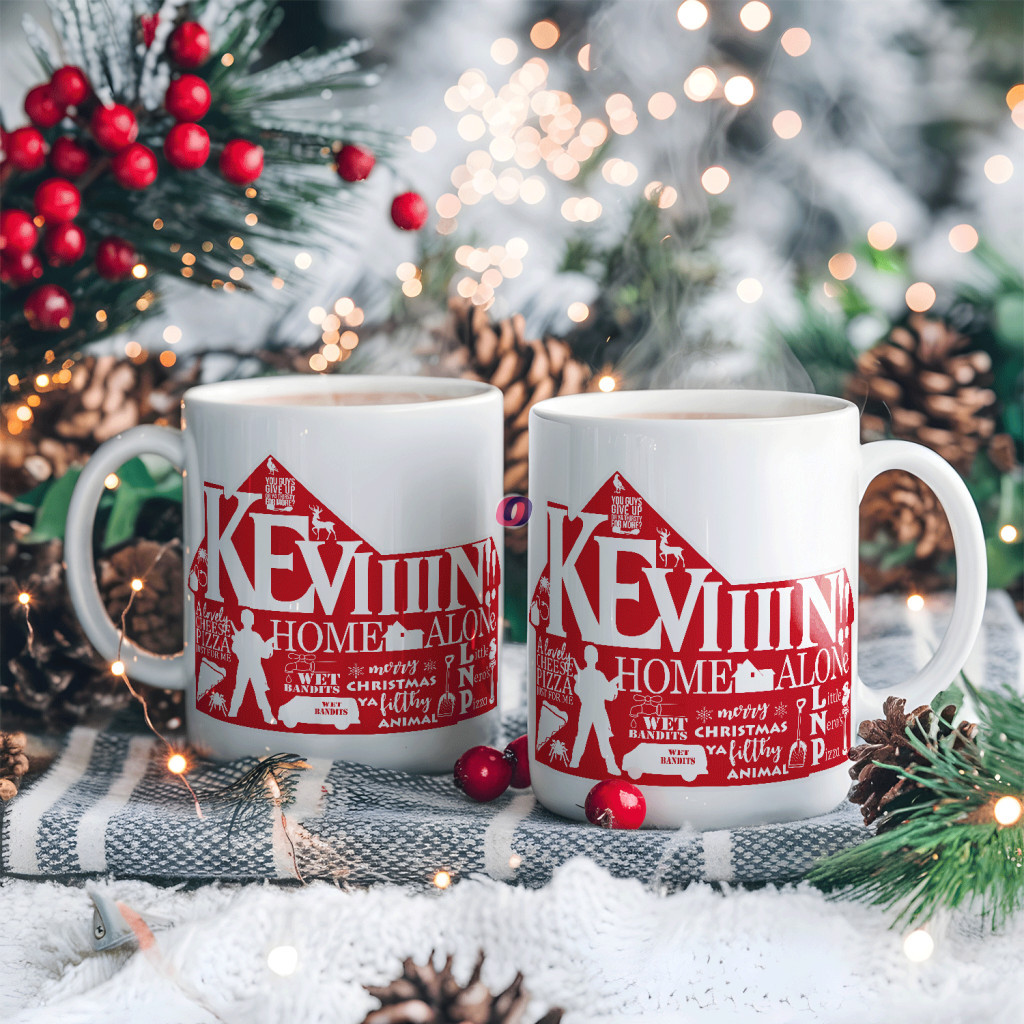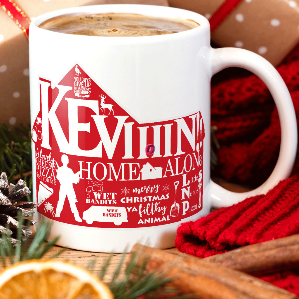 Karácsonyi bögre "Reszkessetek betörők - Keviiin" 330 ml kerámia Full HD