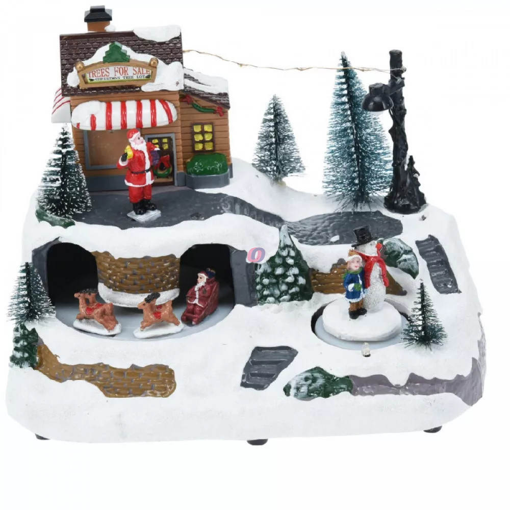 Téli LED-es mozgó dísz – házikó, folyó és forgó fa