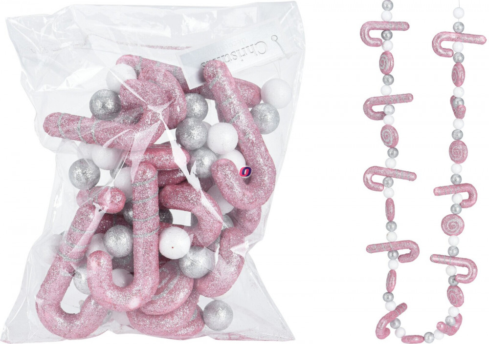 Karácsonyi girland Candy cane 1,4 m pink