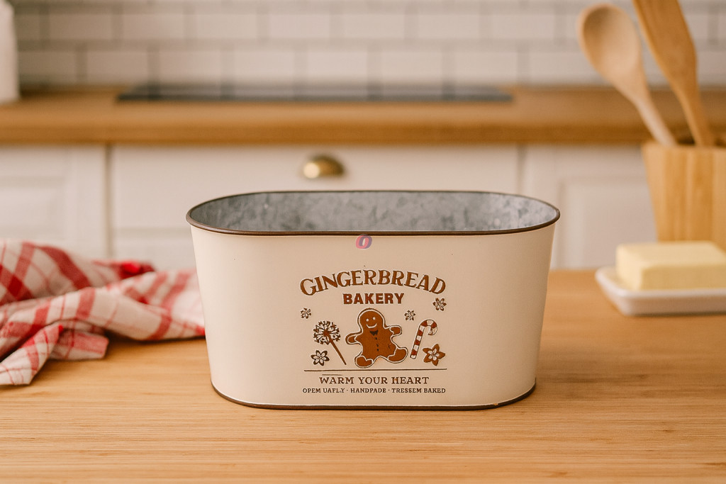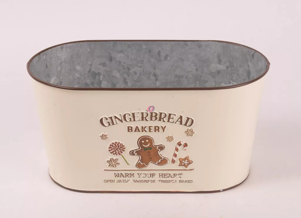 Karácsonyi mintás bádog kaspó ovál kitűnő dekorációs kellék, amely kiválóan használható kézzel készített dekorációk alapjakén.