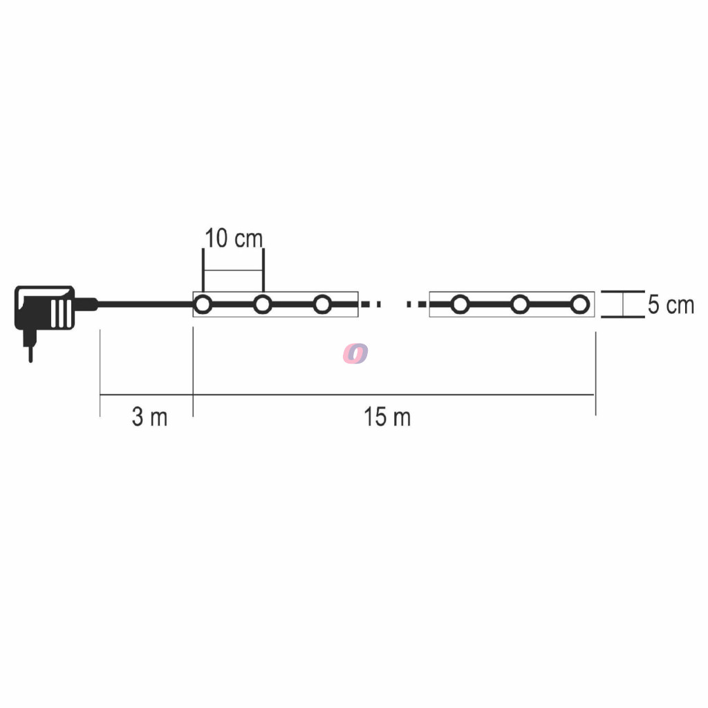 hosszúság: 15 m / szélesség: 5 cm / LED-ek távolsága: 10 cm |