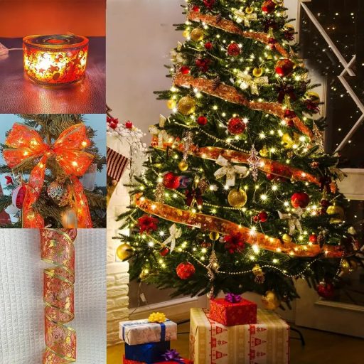 Emelje az ünnepi hangulatot ezzel a varázslatos, LED-es karácsonyi szalaggal! Az organza anyagból készült szalag áttetsző mégis csillogós felülettel rendelkezik, ami lenyűgöző megjelenést kölcsönöz neki. A szalag belsejében melegfehér LED fényfüzér található, ami további varázslatot és fényt visz az ünnepi dekorációdba. Kiváló választás karácsonyfák dekorálására.