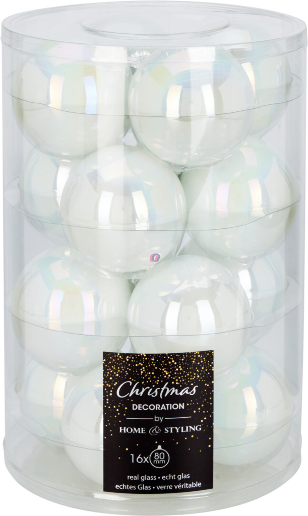 Díszítsd fel karácsonyfádat ezzel az elegáns 6 darabos üveggömb szettel! A 80 mm átmérőjű gömbök gyöngyház fényű felületüknek köszönhetően különleges ragyogást adnak az ünnepi dekorációnak.