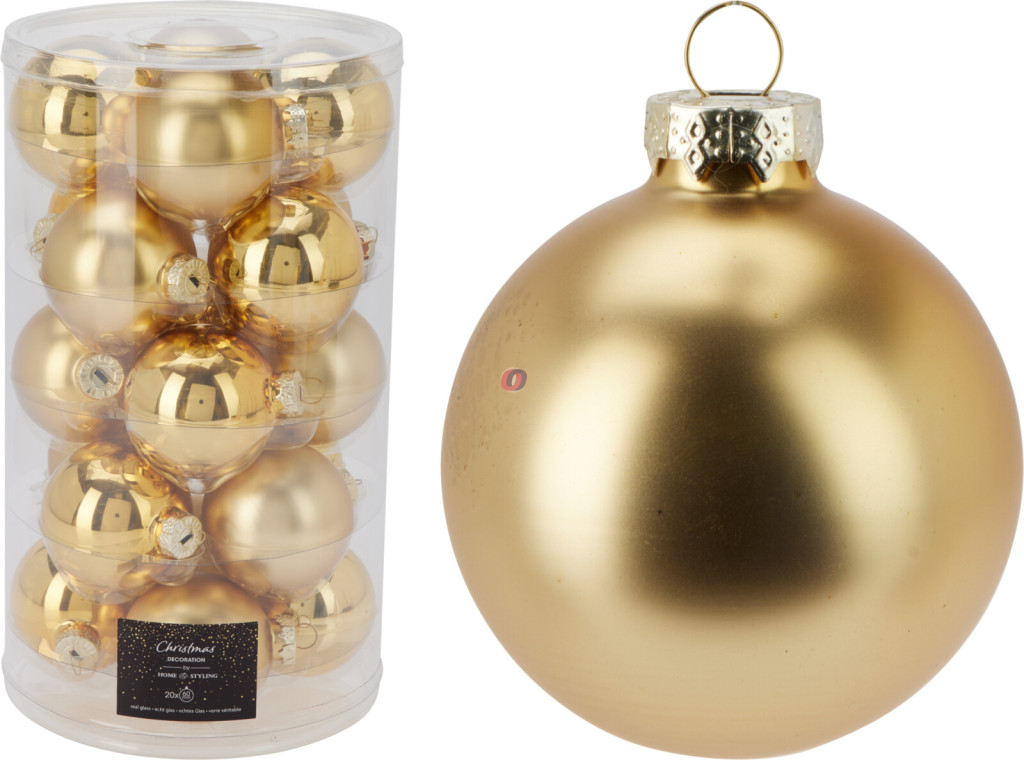 Varázsold ünnepivé otthonod ezzel a 20 darabos karácsonyi üveggömb szettel! A 60 mm átmérőjű gömbök klasszikus arany színben érkeznek, fényes és matt felülettel kombinálva. Ez a letisztult és elegáns színvilág minden karácsonyfán gyönyörű összhatást teremt.