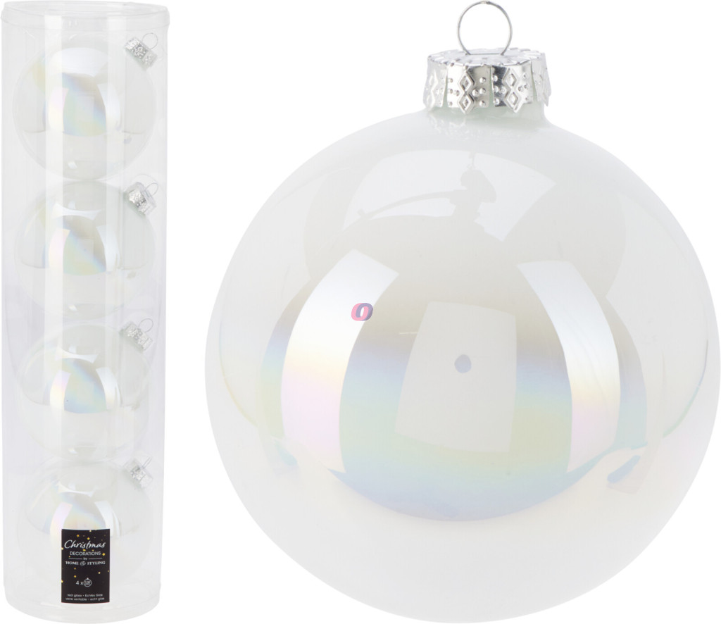 Díszítsd fel karácsonyfádat ezzel az elegáns 4 darabos üveggömb szettel! A 100 mm átmérőjű gömbök gyöngyház fényű felületüknek köszönhetően különleges ragyogást adnak az ünnepi dekorációnak.