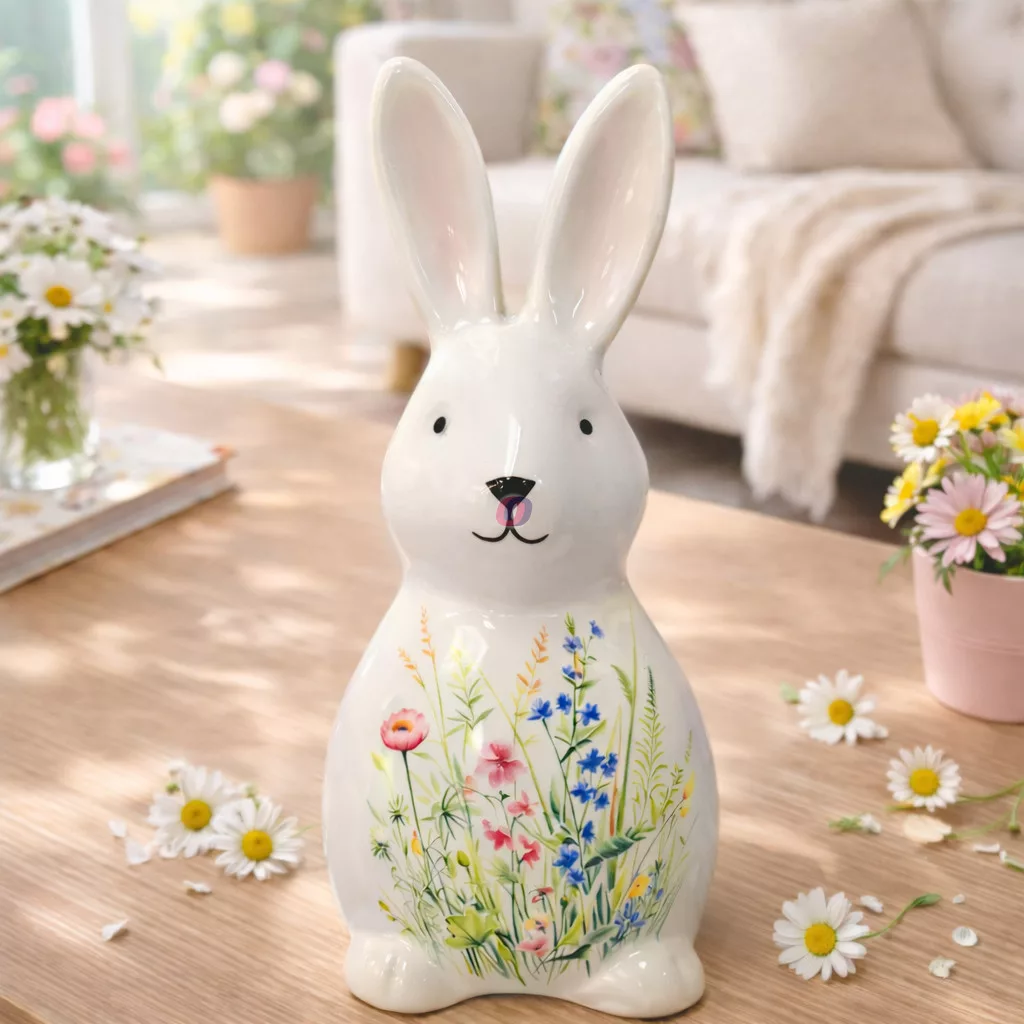 Kerámia nyúl virágos fehér 5×12,4 cm kedvező áron, magyar vállalkozástól! Varázsolj otthonodba tavaszi, üde hangulatot prémium minőségű dekorációink segítségével!
