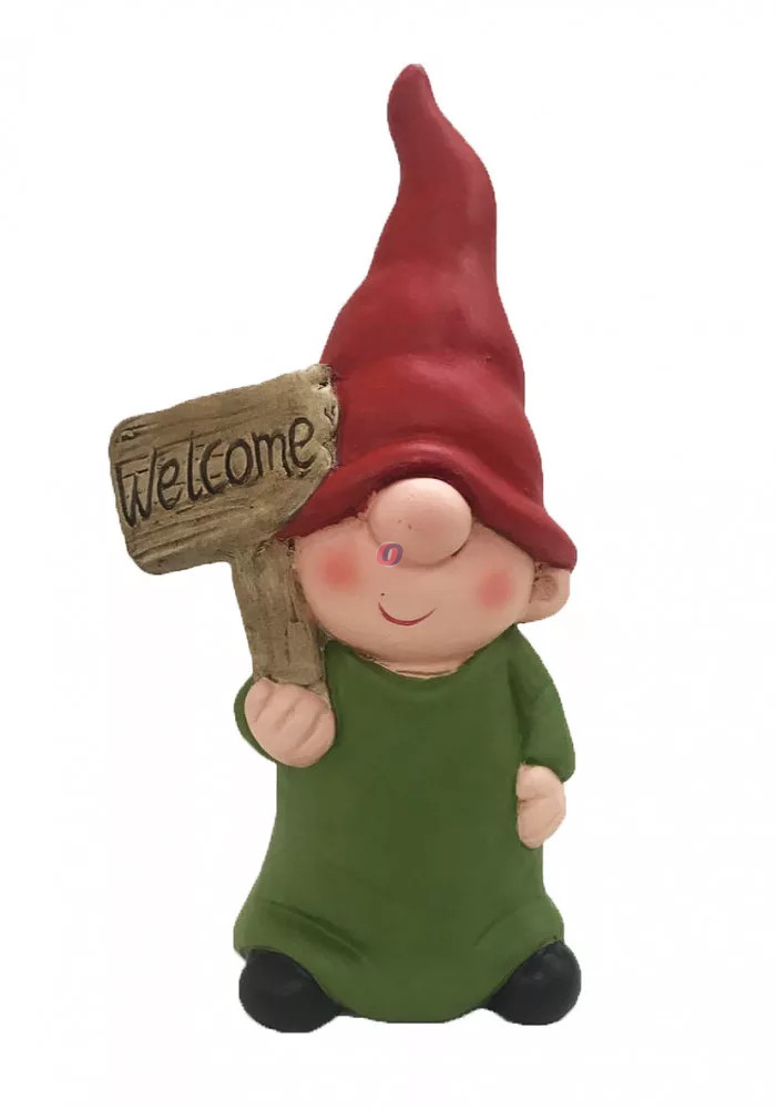 Fedezd fel fantasztikus kerti díszeink széles választékát! A Kerti figura manó fiú welcome táblával 22 cm egy szuper kerti kiegészítő mely üde színfoltja lesz a kertednek, bejáratnak!