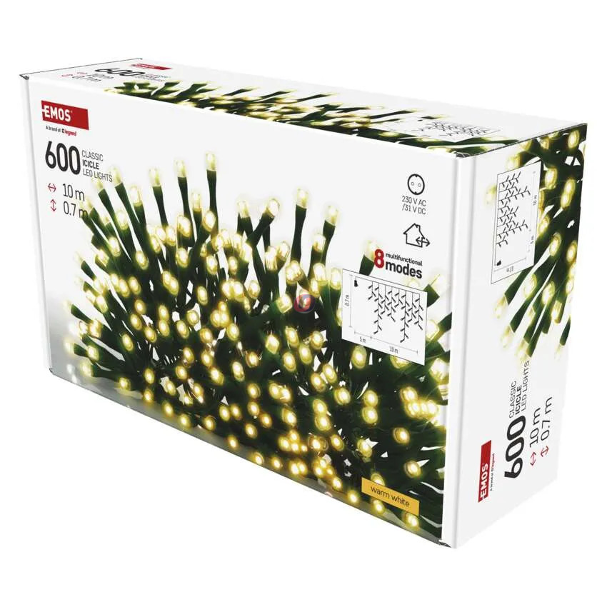 Kültéri Jégcsap fényfüzér – extra lelógással, 10 m, melegfehér, 600 LED