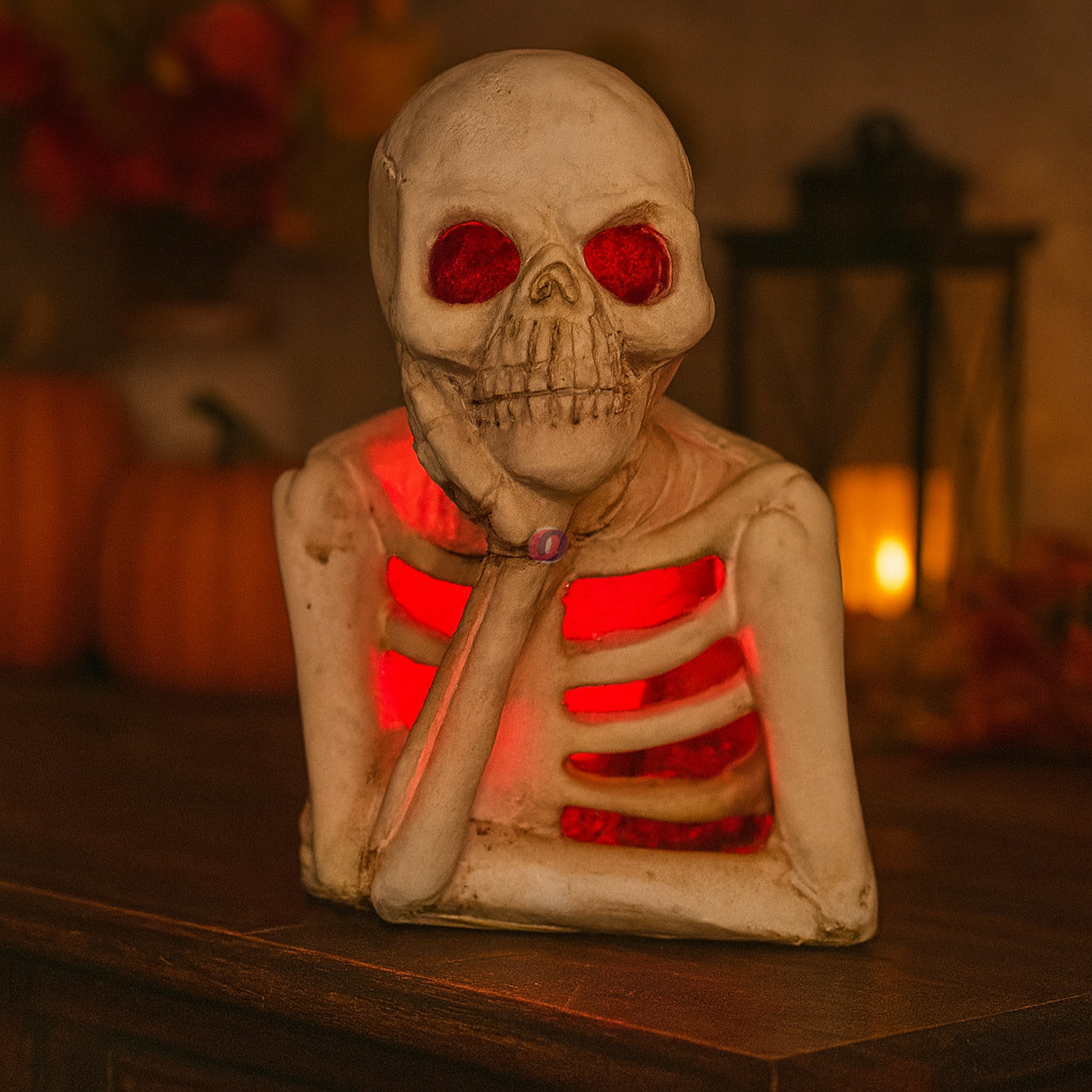 Ez a LED csontváz dísz stílusos és hatásos dekoráció – ideális választás, ha szeretnél egy elegáns, mégis játékos Halloween elemet kínálni webshopodban vagy kirakatodban. Egyesíti a fényhatás és a részletgazdag kivitelezés előnyeit.