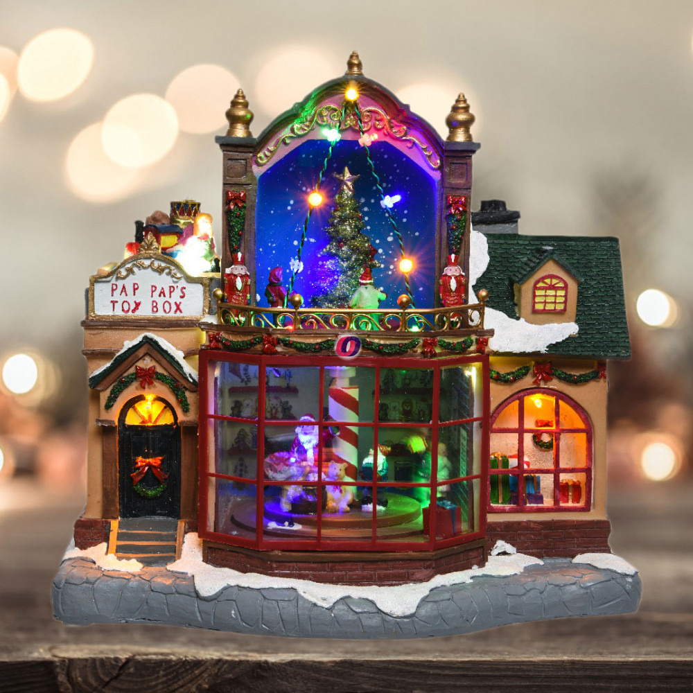 A Karácsonyi dioráma különleges megjelenésével garantálja a meghitt ünnepi hangulatot és igazi ékköve lesz a készülő karácsonyi dekorációdnak.Luxury Karácsonyi Dioráma "Toy Shop" 30 cm tökéletes választás ajándékba, vagy a lakás látványos feldíszítéséhez.