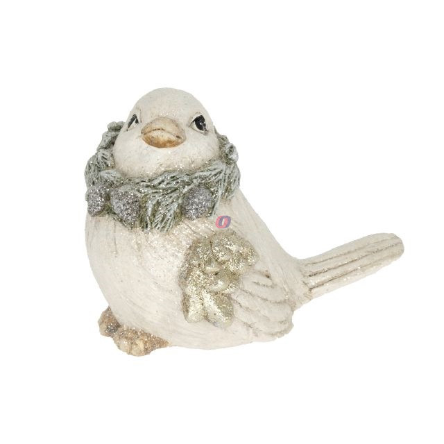| Megnevezés | Madár koszorúval, tobozzal, glitteres poly 17x11x13 cm fehér, zöld |